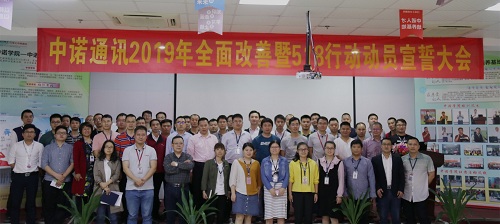 2019年4月4日,福日电子全资子公司深圳市中诺通讯有限公司2019年全面改善暨518行动动员誓师大会在中诺学院举行,公司运营平台、各事业部代表约120人参会。