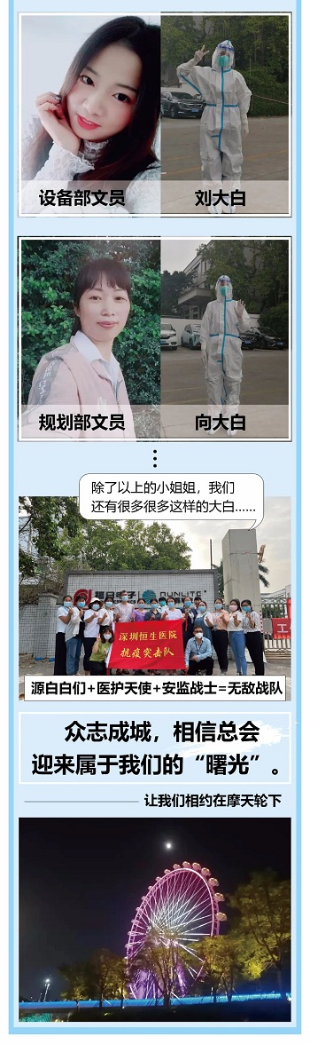 无独有偶,源磊科技也用“微光聚爱”。从2月26日至3月22日,在其中的13个日子里,源磊科技的16名志愿者“逆行”奔赴防疫前线,配合当地有关部门开展消毒、核酸检测等工作。无论骄阳似火,亦或刮风下雨,这群“大白”们都坚守在志愿服务一线。正如他们所说,疫情当前,他们从不缺席,迎接美好四月天是他们坚持的动力。
