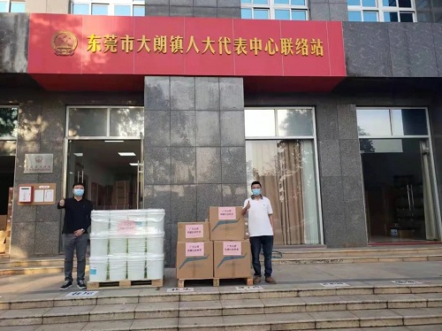 在东莞市大朗镇,一场爱心接力也在上演。2月27日,东莞市企业家范仁强向以诺通讯赠送4吨84消毒液、3000瓶酒精、5万个医用口罩等大批防疫物资。为支持大朗镇一线疫情防控工作,以诺通讯将爱心接力,又将这批防疫物资部分转赠给大朗镇经信局、资产经营公司、黄草朗派出所、松木山村委、水平村委等相关单位,共筑疫情防控坚实后盾。