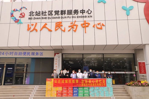 在深圳,为感谢广大社区防疫工作者舍小家、为大家的辛劳付出,3月3日上午,中诺通讯向北站社区一线防疫工作者捐赠了一批慰问品。深圳市委委员、龙华区党校副校长何新生和北站社区党委书记郑阳也对中诺通讯的爱心捐赠表示感谢,并充分肯定了公司的疫情防控举措与成效,希望公司进一步统筹做好疫情防控和生产经营工作。