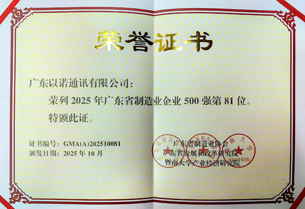 近日,在“2025年广东省制造业500强企业峰会”上,福日电子成员企业以诺通讯凭借坚实的产业基础与稳健增长的业绩表现,成功入选“2025年广东省制造业企业500强”,位列第81位,较去年提升14位,展现出公司在高质量发展道路上的强劲势头与日益突出的行业影响力。