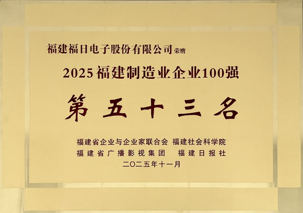 福建正加快建设制造强省,制造业增加值占GDP比重已升至全国第二位。百强企业成为支撑制造业结构升级、推动产业集群发展的重要力量。在这一高标准评选体系下,福日电子连续上榜,反映出公司在规模体量、创新能力、盈利质量及产业带动等方面保持领先。