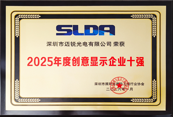 1月6日,以“未来之光·链接世界”为主题的深圳市照明与显示工程行业协会(SLDA)十周年年会在深圳举行。会上,福日电子成员企业迈锐光电凭借在创意显示领域的持续创新与成熟应用,成功入选“2025年度创意显示企业十强”,获行业专家与市场客户的高度认可。