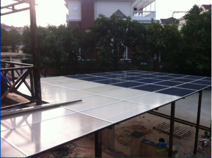 采用技术:利用光伏组件及组件钢化玻璃取代原有阳光房的夹胶玻璃,这样既可以利用阳光房屋面发电又可以给阳光房遮阳。